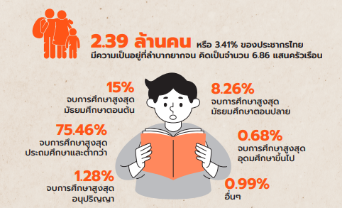 เด็กไทยในครัวเรือนยากจนยิ่งโต โอกาสในการเรียนต่อยิ่งน้อย ในปี 2566 เด็กเปราะบางยากไร้ในวัย 18-21 ปี เพียง 3.96% เท่านั้นที่ได้รับโอกาสศึกษาต่อระดับ ปวส. และปริญญาตรี