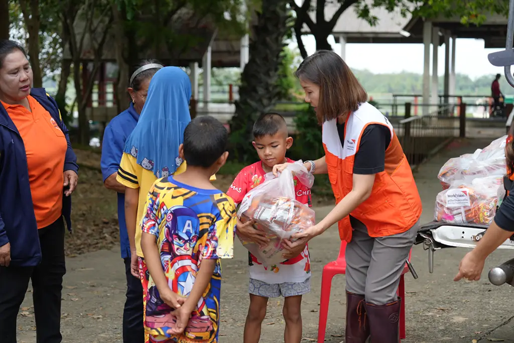 มูลนิธิฯ เข้าช่วยเหลือตามความต้องการเร่งด่วนหลังจากเกิดภัยพิบัติ เช่น การสนับสนุนถุงยังชีพ เป็นต้น