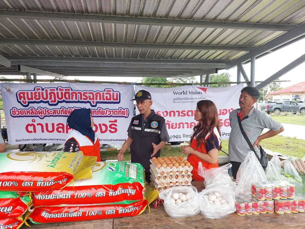 แจกชุดบรรเทาทุกข์ 1,486 ชุด (ข้าวหอมมะลิ ปลากระป๋อง บะหมี่กึ่งสำเร็จรูป นมถั่วเหลือง น้ำดื่ม ขนม และเสื่อ) ในอำเภอหาดใหญ่ จ.สงขลา