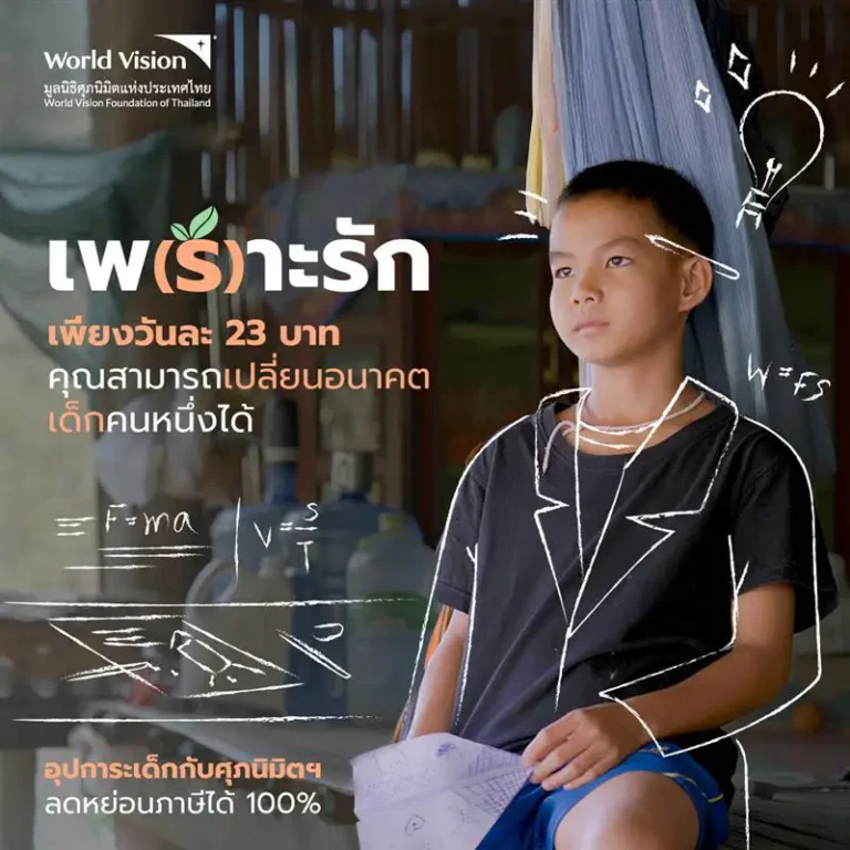 Yes, you can claim a tax deduction. Because the World Vision Foundation of Thailand is a public charity organization ranked 59th according to the announcement of the Ministry of Finance, the donated funds are eligible for a tax deduction.