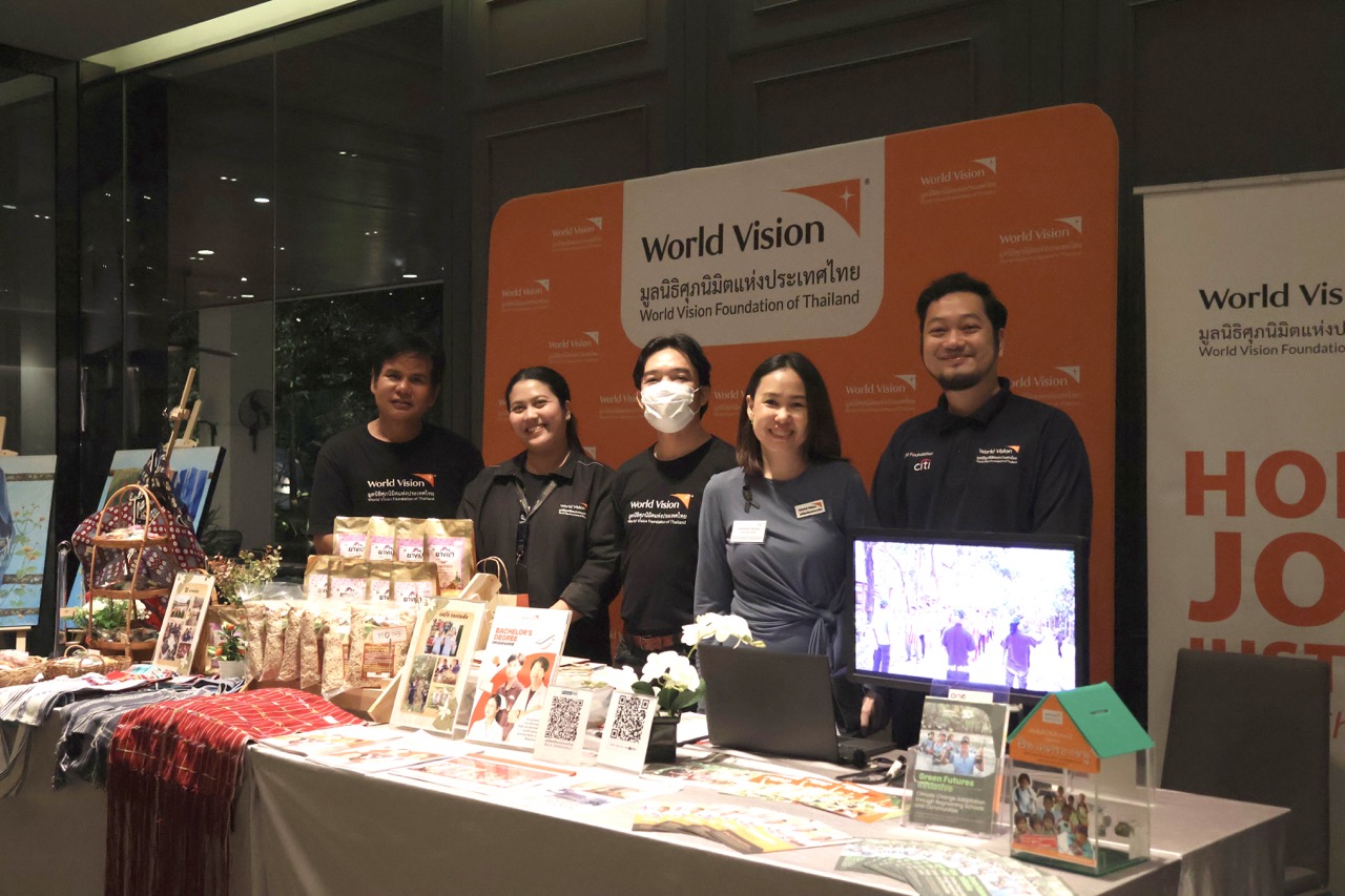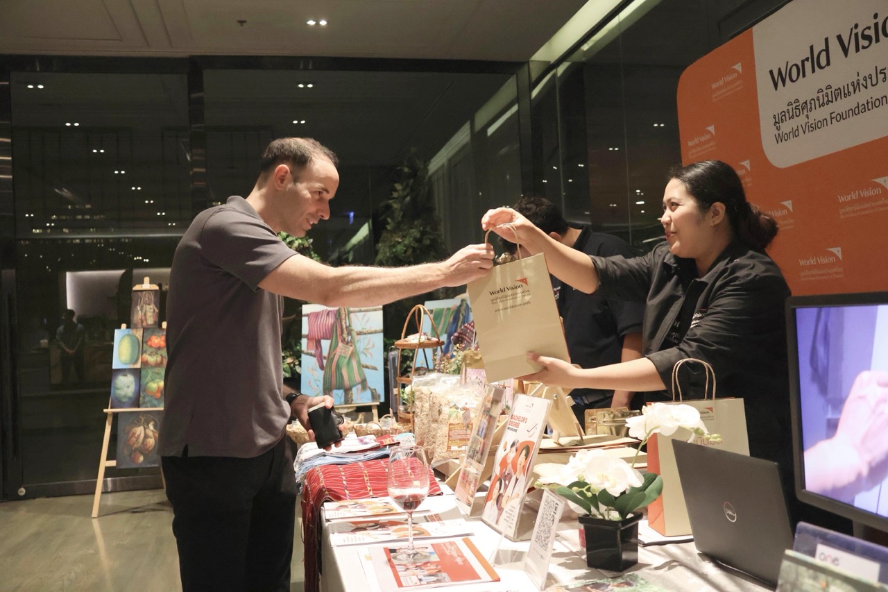 In addition to fundraising, World Vision Foundation of Thailand showcased and sold products from Ban Yang Pao Community, including handwoven fabrics, rice, handicrafts, and fresh coffee beans produced by students from Ban Yang Pao School, as well as artwork created by local youth. Guests had the opportunity to appreciate the craftsmanship and dedication behind these items, while learning about World Vision Foundation of Thailand’s programmes supporting vulnerable children and families nationwide — from education and child protection to sustainable community development.