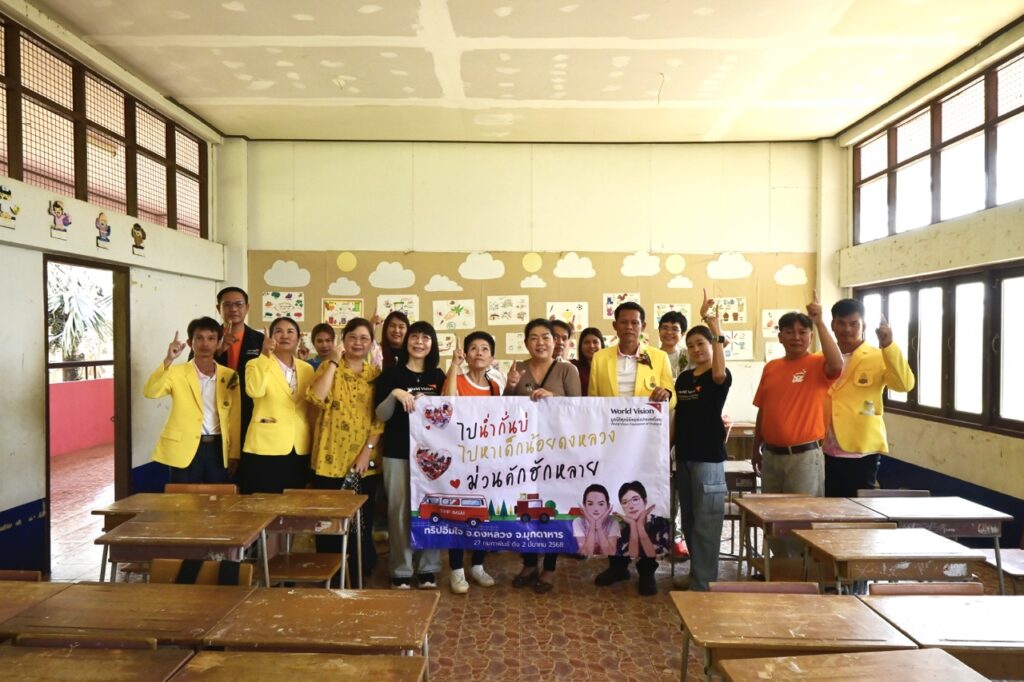 ร่วมกันบันทึกภาพความทรงจำทั้งผู้ให้และผู้รับในห้องเรียน ที่ได้รับการซ่อมแซม