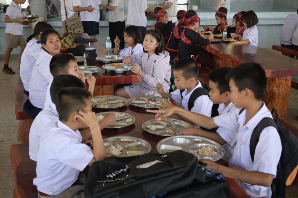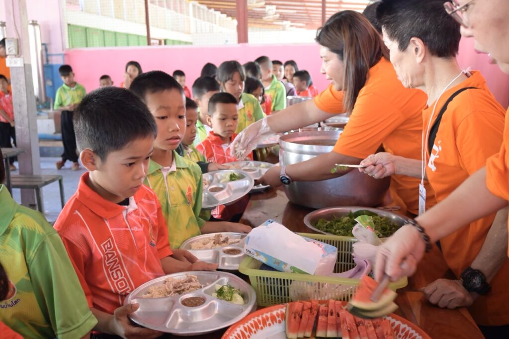กิจกรรมหลากหลาย สนุก และอบอุ่น ทั้ง การมอบของขวัญ อุปกรณ์การเรียน ชุดสุขอนามัย จัดเลี้ยงอาหารกลางวัน ให้กับเด็ก ๆ โรงเรียนบ้านโสก และโรงเรียนร่มเกล้า จำนวน 440 คน เป็นความสุขและมื้อพิเศษที่ทุกคนได้รับประทานอาหารร่วมกัน บรรยากาศเต็มไปด้วยรอยยิ้มเสียงหัวเราะ เสียงพูดคุยของเด็ก ๆ และผู้มาเยือน อาหารที่จัดเตรียมไว้อย่างพิถีพิถันด้วยฝีมือของแม่ครัวไม่เพียงเติมท้องของเด็ก ๆ ให้อิ่ม แต่ยังเติมเต็มหัวใจของทุกคนที่ได้มีส่วนร่วมในทริปอิ่มใจครั้งนี้