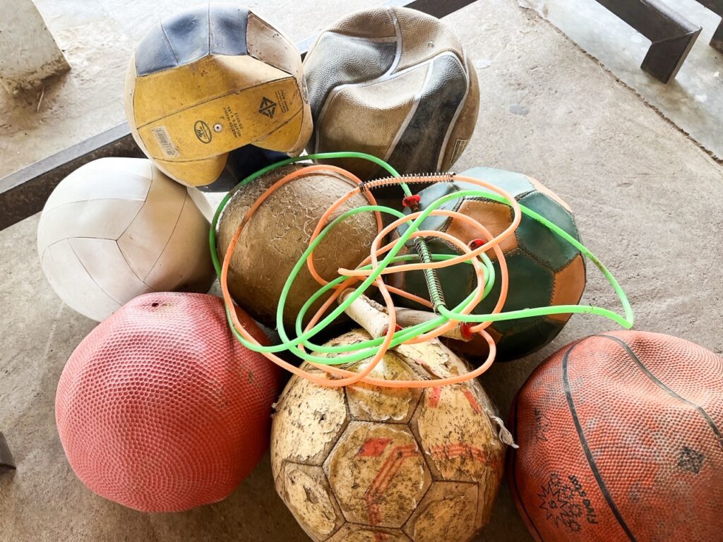 ลูกบอลอยู่ในสภาพที่เก่า ชำรุด เด็กๆ