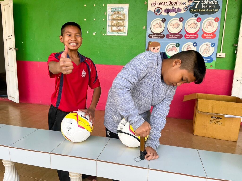 ‘เติมลม ได้รอยยิ้ม’ เด็กๆ ช่วยกันเติมลมลูกวอลเล่ย์บอล