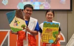 “หนูรู้สึกดีใจค่ะที่พี่ ๆ จะมาซ่อมแซมปรับปรุงสนามเด็กเล่น ให้หนูและน้อง ๆ ได้มีสนามเด็กเล่นใหม่ค่ะ” น้องอ้อ