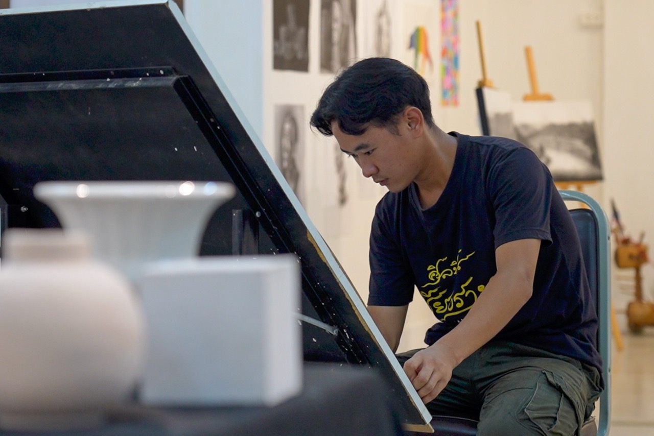 น้องเจยอมรับตรง ๆ ว่า หากเขาไม่ได้รับทุนการศึกษานี้ เขาคงไม่ได้มายืนทำงานศิลปะในวันนี้ และคงไม่ได้มีโอกาสสร้างสรรค์ผลงานจำนวนมากที่กำลังจัดแสดงอยู่ในขณะนี้
