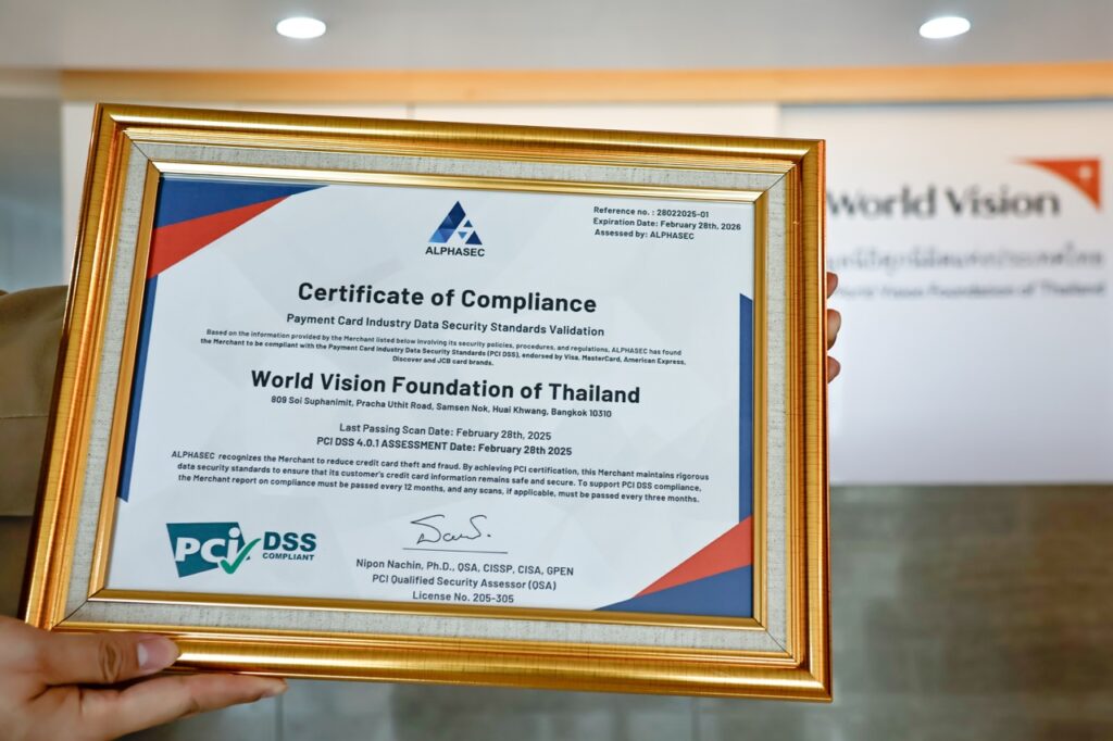 ผู้บริจาคจึงสามารถมั่นใจได้ว่า เมื่อท่านบริจาคผ่านมูลนิธิศุภนิมิตแห่งประเทศไทย ทุกการบริจาคไม่เพียงจะถูกนำไปใช้อย่างมีประสิทธิภาพเพื่อช่วยเหลือเด็ก ครอบครัว และชุมชนที่เปราะบางยากไร้ที่สุด แต่ข้อมูลส่วนตัวและข้อมูลทางการเงินของท่านยังได้รับการปกป้องด้วยมาตรฐานความปลอดภัยระดับโลกอีกด้วย