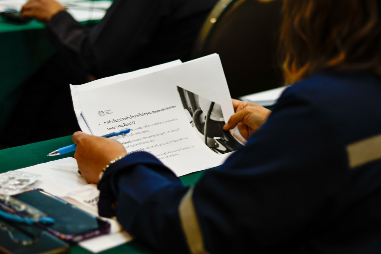 ด้านคุณนรีลักษณ์ แพไชยภูมิ ผู้อำนวยการกองสิทธิมนุษยชนระหว่างประเทศ กรมคุ้มครองสิทธิและเสรีภาพ กระทรวงยุติธรรม นำเสนอแผนปฏิบัติการระดับชาติว่าด้วยธุรกิจและสิทธิมนุษยชน (NAP) ระยะที่ 2 พ.ศ. 2566–2570 ซึ่งกำหนดให้ภาคธุรกิจต้องดำเนินงานโดยเคารพสิทธิมนุษยชนตลอดห่วงโซ่อุปทาน ไม่ใช่แค่ในส่วนที่บริษัทดูแลโดยตรง แต่รวมถึงผู้รับเหมาทุกระดับ