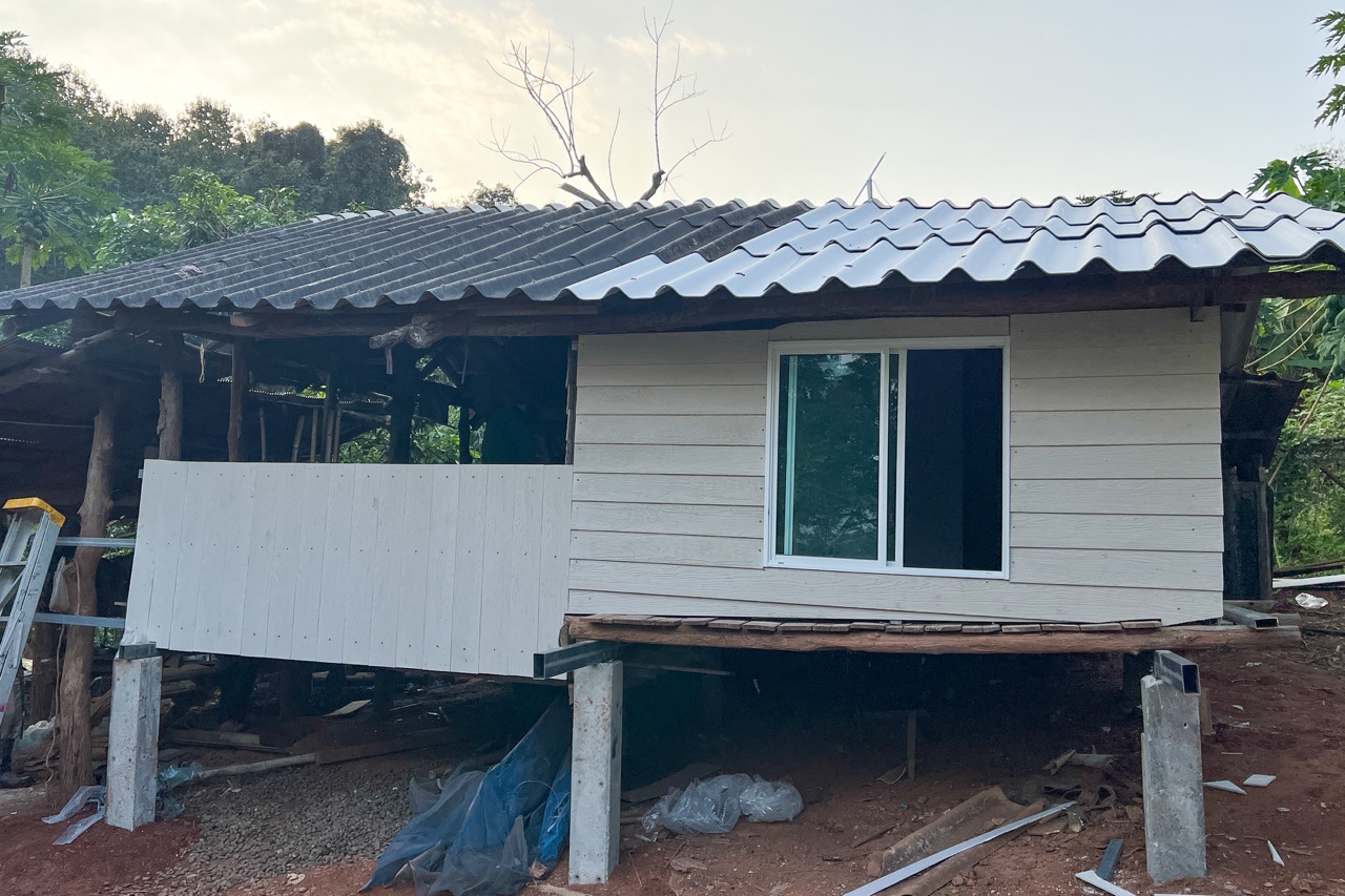 หลังคาและโครงสร้างได้รับการปรับปรุงให้มั่นคง มีการติดตั้งหน้าต่างเพื่อให้อากาศถ่ายเท และยกพื้นบ้านให้แห้งและแข็งแรงขึ้น บ้านหลังเดิมที่เคยทรุดโทรมจึงกลับมามีชีวิตใหม่อีกครั้ง