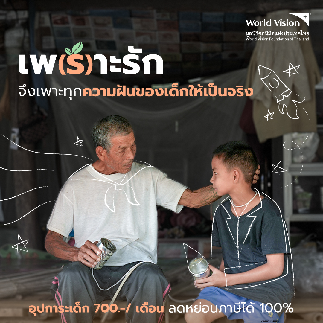 เราเชื่อว่าความรักเป็นพลังขับเคลื่อนที่สำคัญ ช่วยสร้างการเปลี่ยนแปลงที่ยิ่งใหญ่ ด้วยการอุปการะเด็ก เพียงวันละ 23 บาท หรือเดือนละ 700 บาท ความรักของคุณสามารถเปลี่ยนชีวิตเด็กหนึ่งคน จากความสิ้นหวังให้กลับมามีอนาคตได้จริง และในช่วงเทศกาลแห่งการให้นี้ เราขอชวนคุณมามอบของขวัญที่มีค่าที่สุด..ไม่ใช่แค่สิ่งของ แต่คืออนาคตของเด็กคนหนึ่ง