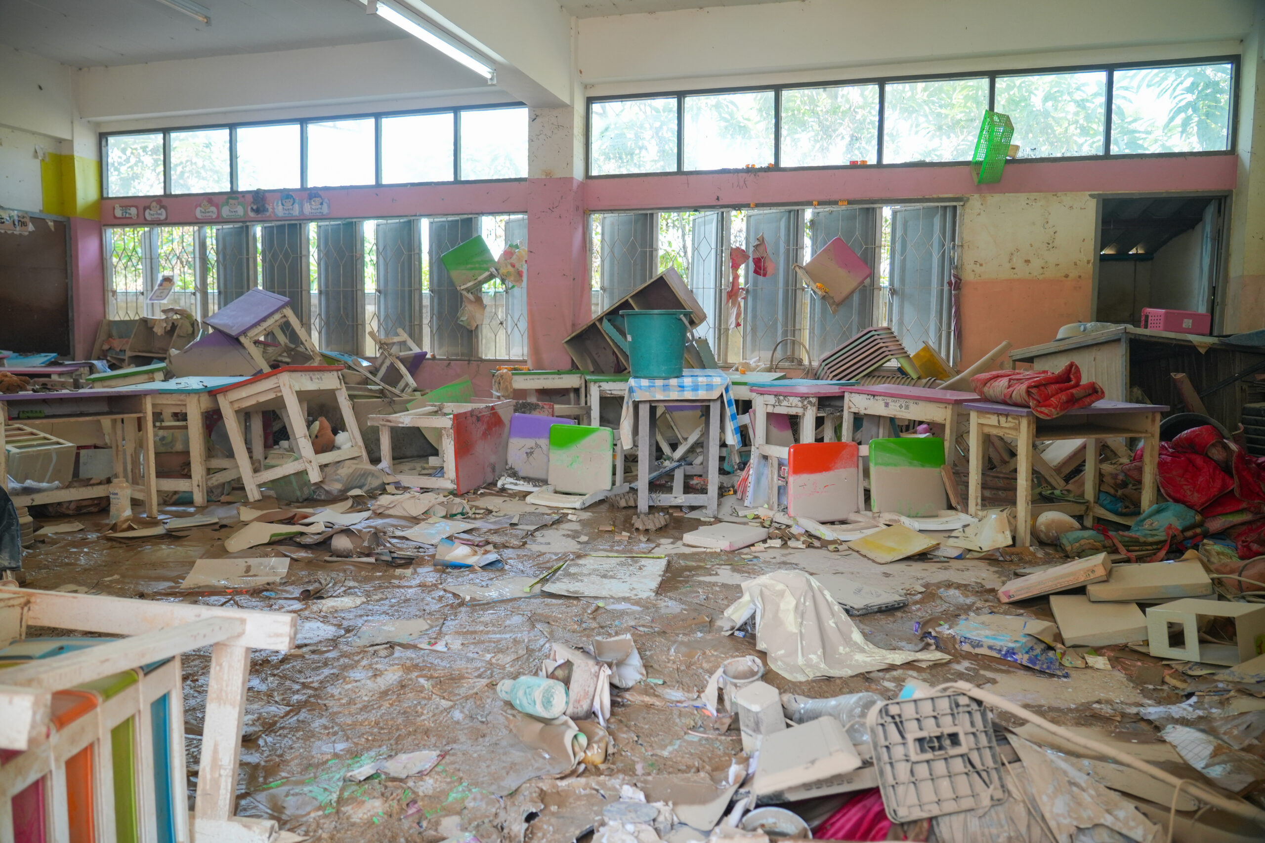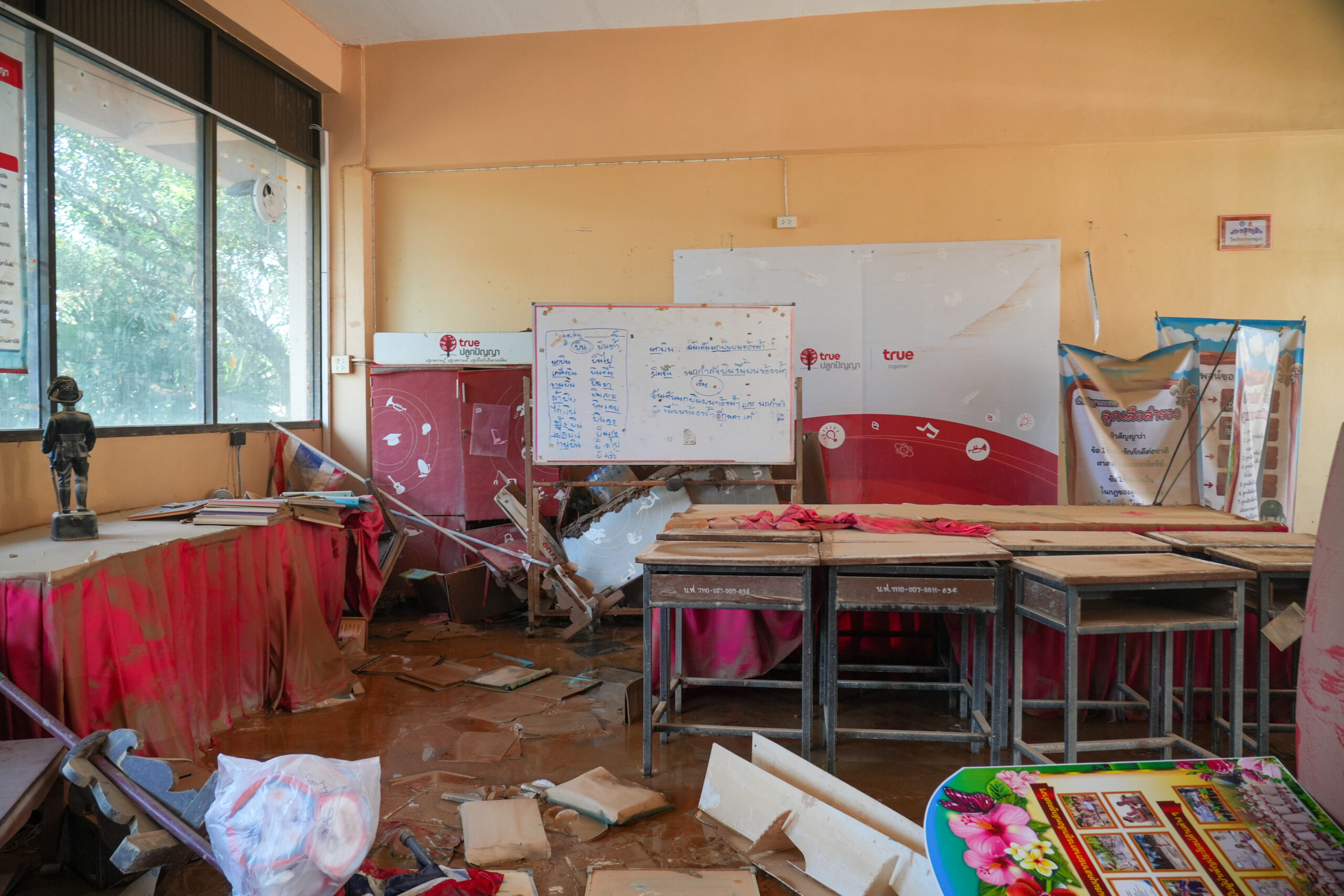 Although the water has now receded, the damage remains. Schools and learning materials were swept away. The children want to return to class as soon as possible. “Our school was badly damaged. All the learning materials and even the canteen were washed away. We really want to go back to school. I love studying mathematics and Thai.”