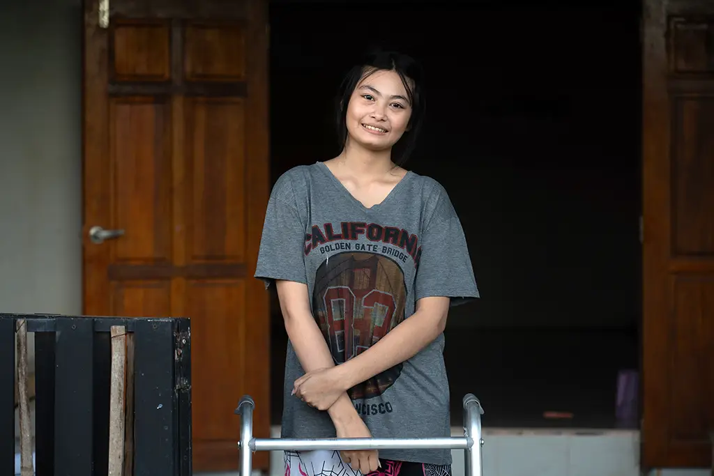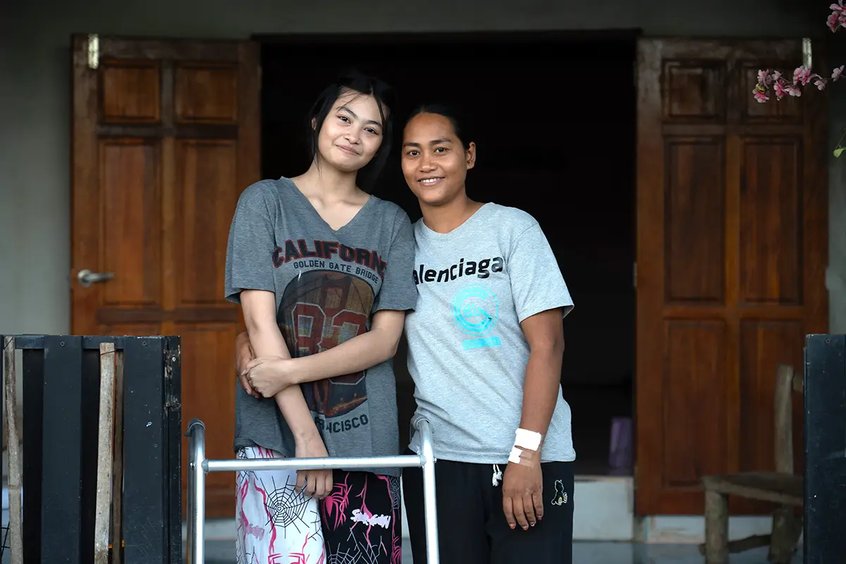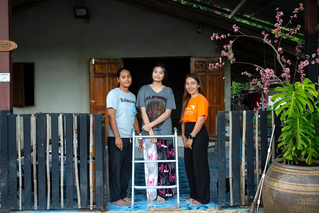 น้องน้ำฟ้าไม่สามารถเดินหรือนั่งได้ด้วยตัวเองเนื่องจากอาการกล้ามเนื้ออ่อนแรง พูดไม่ได้ และไม่สามารถทานอาหารแข็งได้ จึงต้องรับประทานอาหารเหลวสูตรพิเศษ คุณแม่ศิริกานต์อยากจะให้น้ำฟ้าได้รับการรักษาอย่างเต็มที่ แต่รายได้ของเธอน้อยมาก “ยังมีลูกอีกสามคนที่ต้องเลี้ยงดูค่ะ” เธอกล่าว เธอเคยทำงานต่างจังหวัดและมีรายได้เดือนละอย่างน้อย 13,000 บาท แต่เมื่อหักค่าใช้จ่ายอื่น ๆ เช่น ค่าเช่าบ้านแล้ว ก็แทบจะไม่เหลือเงินเลย สุดท้ายเธอจึงต้องกลับมาบ้านเกิดและรับจ้างรายวัน ทำงานทุกอย่างที่หาได้ “ช่วงโรคระบาดเป็นช่วงที่ลำบากมาก” เธอกล่าวเสริม เธอไม่สามารถพาน้ำฟ้าไปตรวจร่างกายหรือทำกายภาพบำบัดได้ ไม่ใช่แค่เพราะข้อจำกัดในการเดินทาง แต่ยังเป็นเพราะขาดรายได้อีกด้วย แม้ระบบประกันสุขภาพของรัฐบาลจะครอบคลุมค่ายาของน้อง แต่ค่าใช้จ่ายในการเดินทาง รวมถึงค่าอาหารและค่ารักษาสุขอนามัยก็เกินกำลังของเธอ