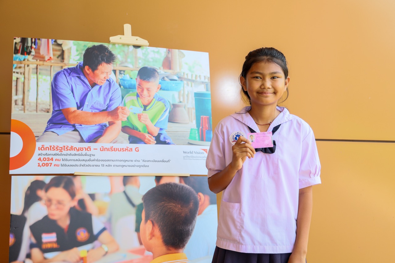 น้องริน อายุ 12 ปี นักเรียนชั้นประถมศึกษาปีที่ 4 เด็กในความอุปการะของมูลนิธิศุภนิมิตฯ โครงการพัฒนาฯ จังหวัดกาญจนบุรี หนึ่งในนักเรียนที่ได้รับ ‘บัตรประจำตัวบุคคลที่ไม่มีสถานะทางทะเบียน’ ซึ่งถือเป็นจุดเริ่มต้นสำคัญของการเข้าถึงสิทธิขั้นพื้นฐานและการมีสถานะบุคคลอย่างถูกต้องตามกฎหมาย