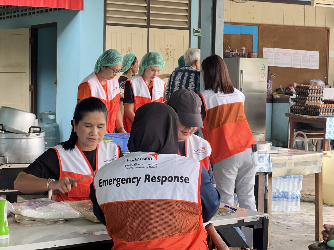 วันนี้เหล่าเจ้าหน้าที่และอาสาสมัครของมูลนิธิศุภนิมิตฯ ไม่เพียงลงพื้นที่เพื่อสำรวจความต้องการ แต่ยังพร้อมใจกันเข้าครัว บางคนหยิบครก บางคนจับตะหลิว เสียงโขลกพริกกระเทียมดังสอดประสานกับเสียงหัวเราะเบา ๆ ท่ามกลางความเหน็ดเหนื่อย ทุกคนทุ่มเทสุดฝีมือเพื่อเตรียมอาหารอุ่น ๆ ส่งตรงถึงมือเด็กน้อยและครอบครัวผู้ประสบภัย เพราะเรารู้ดีว่า อาหารไม่ใช่แค่เพื่อประทังหิว แต่คือพลังใจที่จะทำให้ทุกคนก้าวต่อไปได้