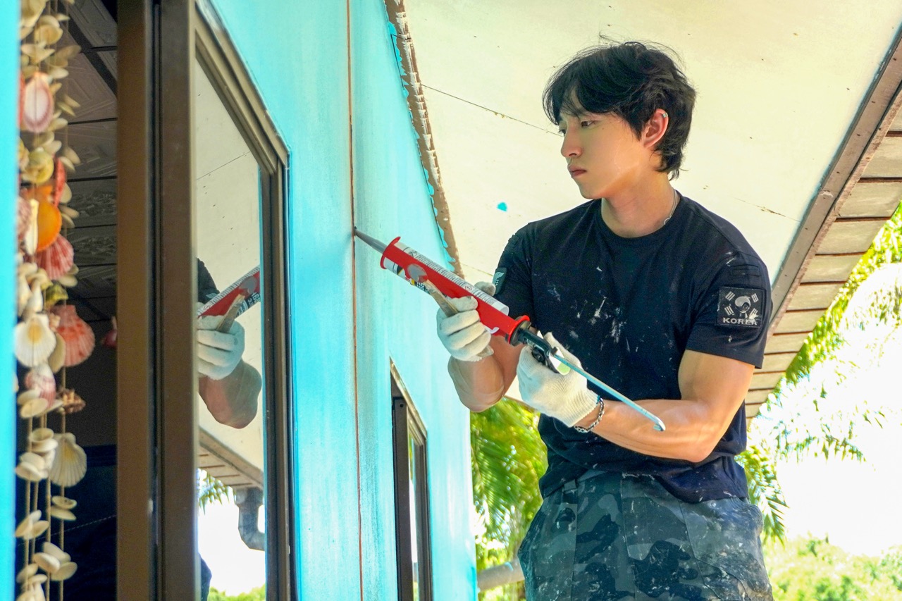 คุณแทรอน จึงเดินทางจากเกาหลีใต้ พร้อมเพื่อน ๆ เพื่อร่วม ทาสีอาคารเรียน ซ่อมแซมรอยร้าว และปรับปรุงจุดเสื่อมโทรม ให้กลับมาน่าอยู่และปลอดภัย อีกทั้งยังลงมือทำอาหารกลางวันเลี้ยงเด็ก ๆ แจกขนม และเล่นฟุตบอลกับน้อง ๆ อย่างอบอุ่นเป็นกันเอง